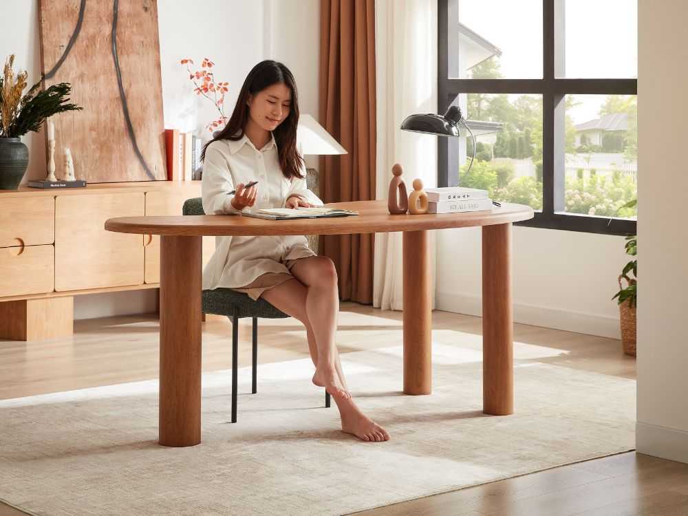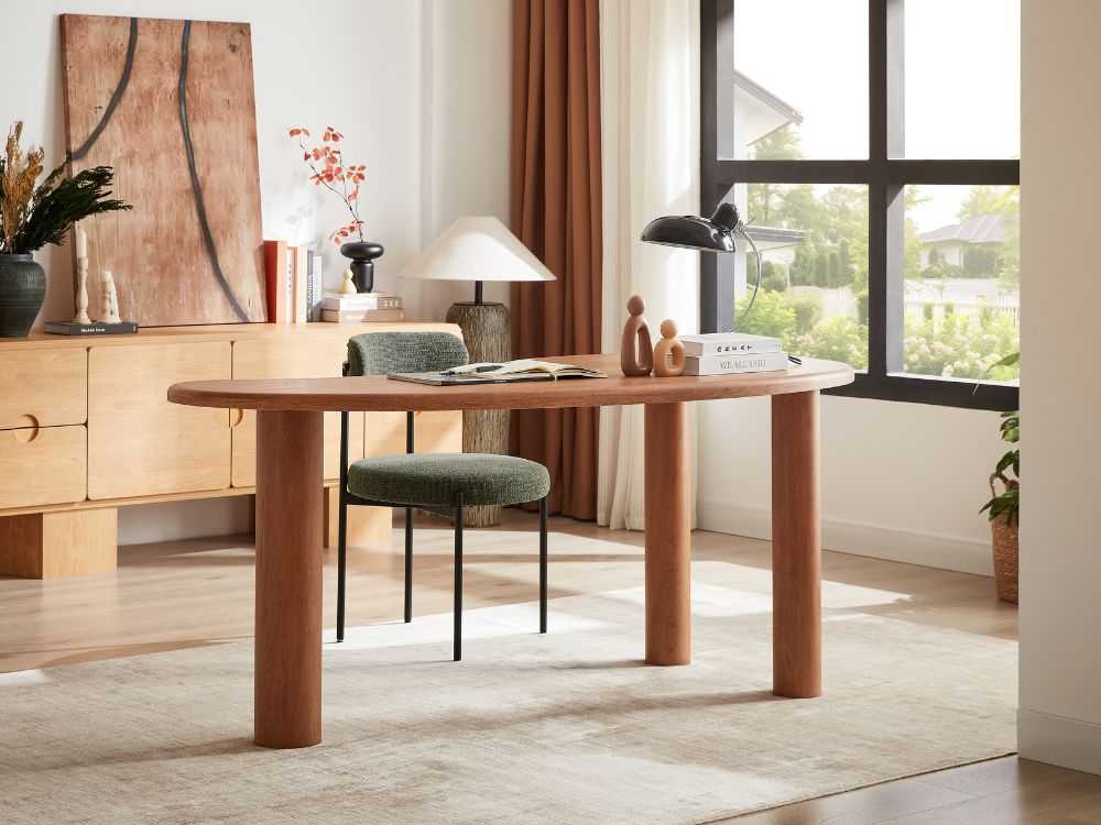 The Caleb Desk stands out with its signature mid-century modern style, highlighted by its soft, rounded edges and organic curves. The gentle flow of its design, paired with the simplicity of clean lines, creates an inviting workspace that feels both modern and timeless.