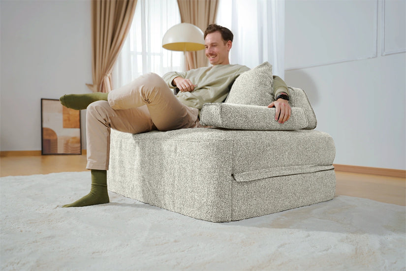 Cushie Modular Sofa Bed transforms from a stylish seat to a cozy bed in seconds—just flip and snooze. Unlike traditional sleeper sofas with noisy metal frames and complex pull-outs, Cushie keeps it simple and silent.