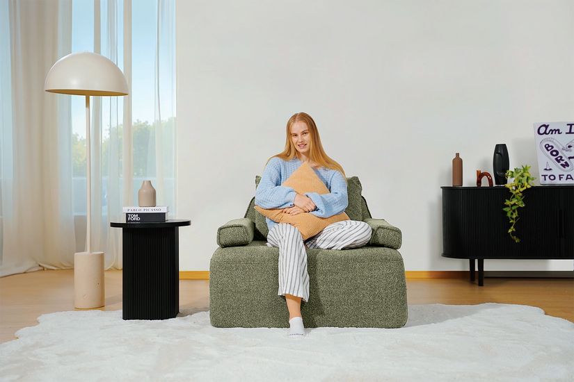 Cushie Modular Sofa Bed transforms from a stylish seat to a cozy bed in seconds—just flip and snooze. Unlike traditional sleeper sofas with noisy metal frames and complex pull-outs, Cushie keeps it simple and silent.