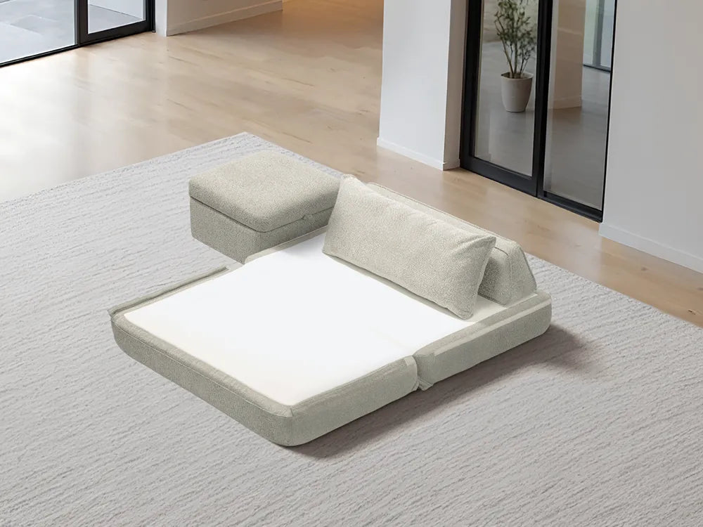 Cushie Modular Sofa Bed transforms from a stylish seat to a cozy bed in seconds—just flip and snooze. Unlike traditional sleeper sofas with noisy metal frames and complex pull-outs, Cushie keeps it simple and silent.
