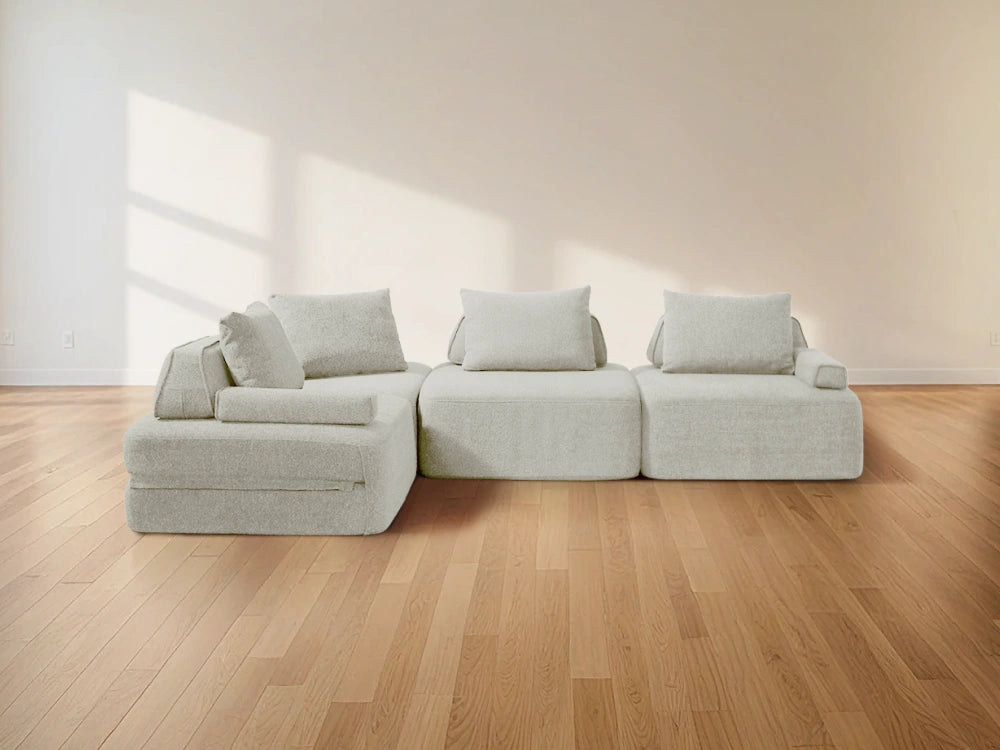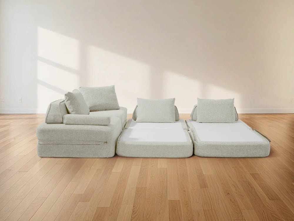 Cushie Modular Sofa Bed transforms from a stylish seat to a cozy bed in seconds—just flip and snooze. Unlike traditional sleeper sofas with noisy metal frames and complex pull-outs, Cushie keeps it simple and silent.
