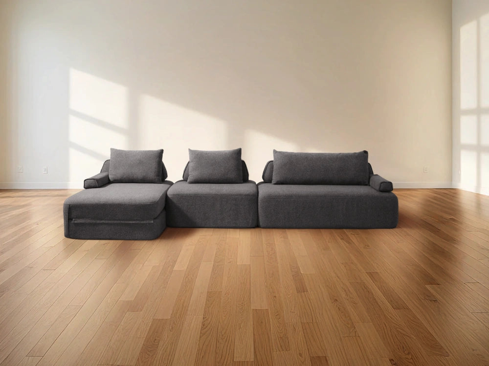 Cushie Modular Sofa Bed transforms from a stylish seat to a cozy bed in seconds—just flip and snooze. Unlike traditional sleeper sofas with noisy metal frames and complex pull-outs, Cushie keeps it simple and silent.