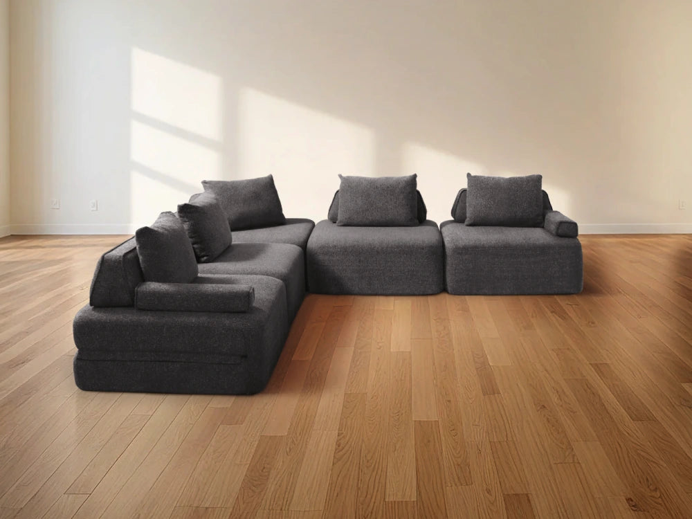 Cushie Modular Sofa Bed transforms from a stylish seat to a cozy bed in seconds—just flip and snooze. Unlike traditional sleeper sofas with noisy metal frames and complex pull-outs, Cushie keeps it simple and silent.
