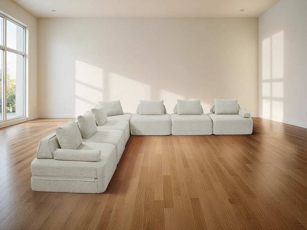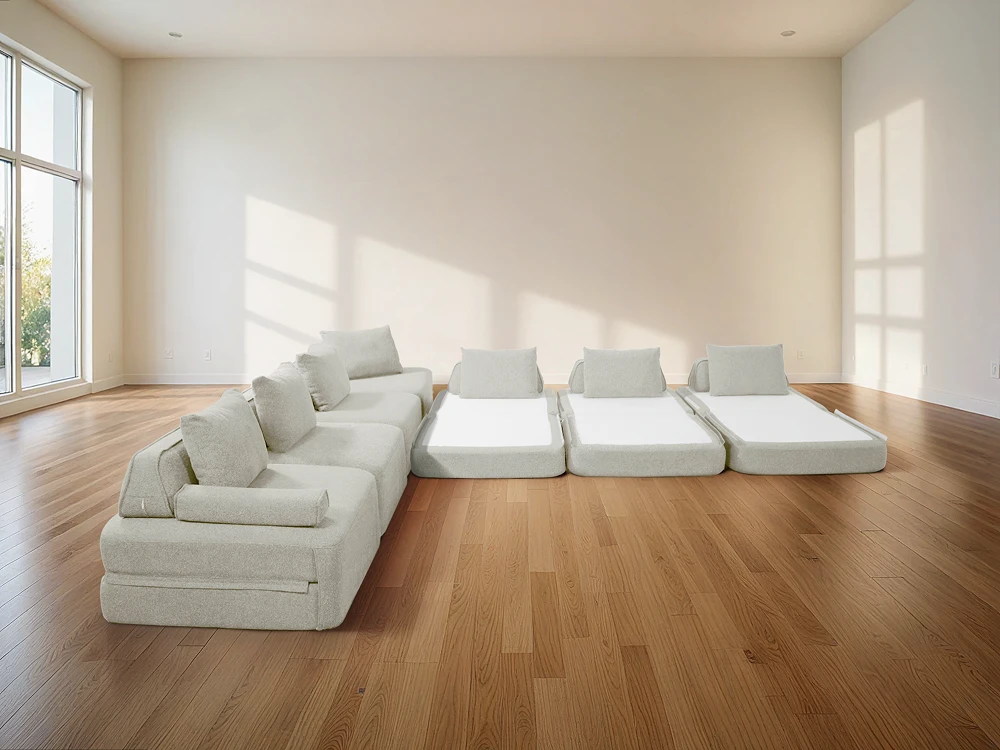 Cushie Modular Sofa Bed transforms from a stylish seat to a cozy bed in seconds—just flip and snooze. Unlike traditional sleeper sofas with noisy metal frames and complex pull-outs, Cushie keeps it simple and silent.