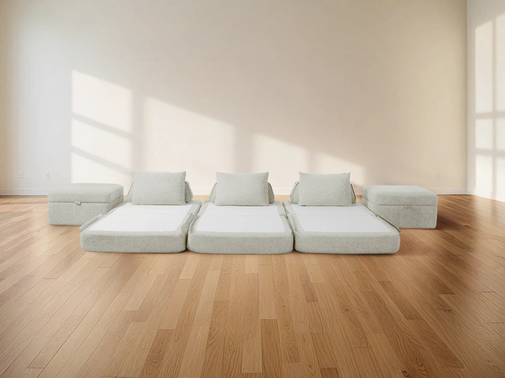 Cushie Modular Sofa Bed transforms from a stylish seat to a cozy bed in seconds—just flip and snooze. Unlike traditional sleeper sofas with noisy metal frames and complex pull-outs, Cushie keeps it simple and silent.