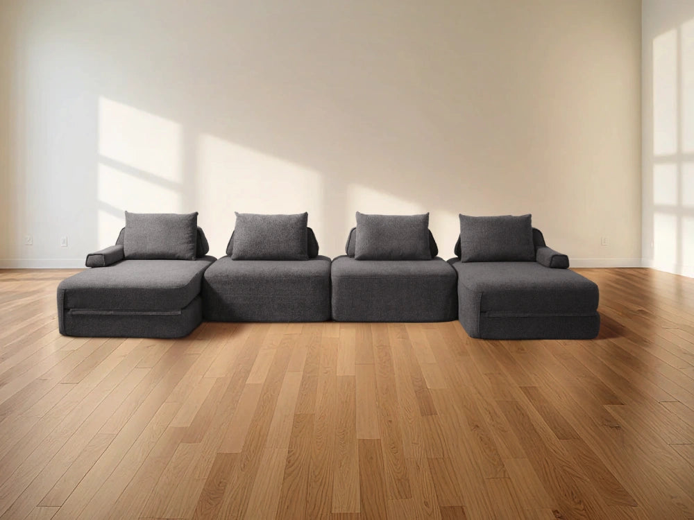 Cushie Modular Sofa Bed transforms from a stylish seat to a cozy bed in seconds—just flip and snooze. Unlike traditional sleeper sofas with noisy metal frames and complex pull-outs, Cushie keeps it simple and silent.