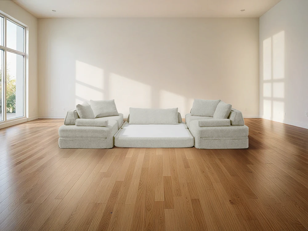 Cushie Modular Sofa Bed transforms from a stylish seat to a cozy bed in seconds—just flip and snooze. Unlike traditional sleeper sofas with noisy metal frames and complex pull-outs, Cushie keeps it simple and silent.