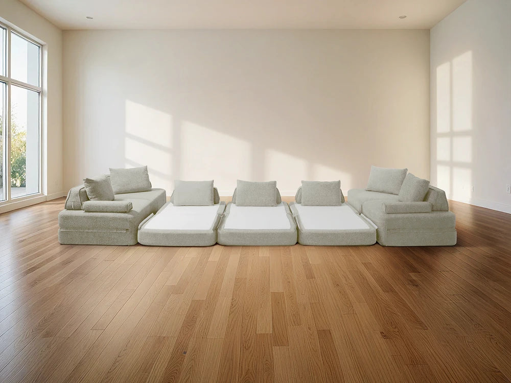 Cushie Modular Sofa Bed transforms from a stylish seat to a cozy bed in seconds—just flip and snooze. Unlike traditional sleeper sofas with noisy metal frames and complex pull-outs, Cushie keeps it simple and silent.