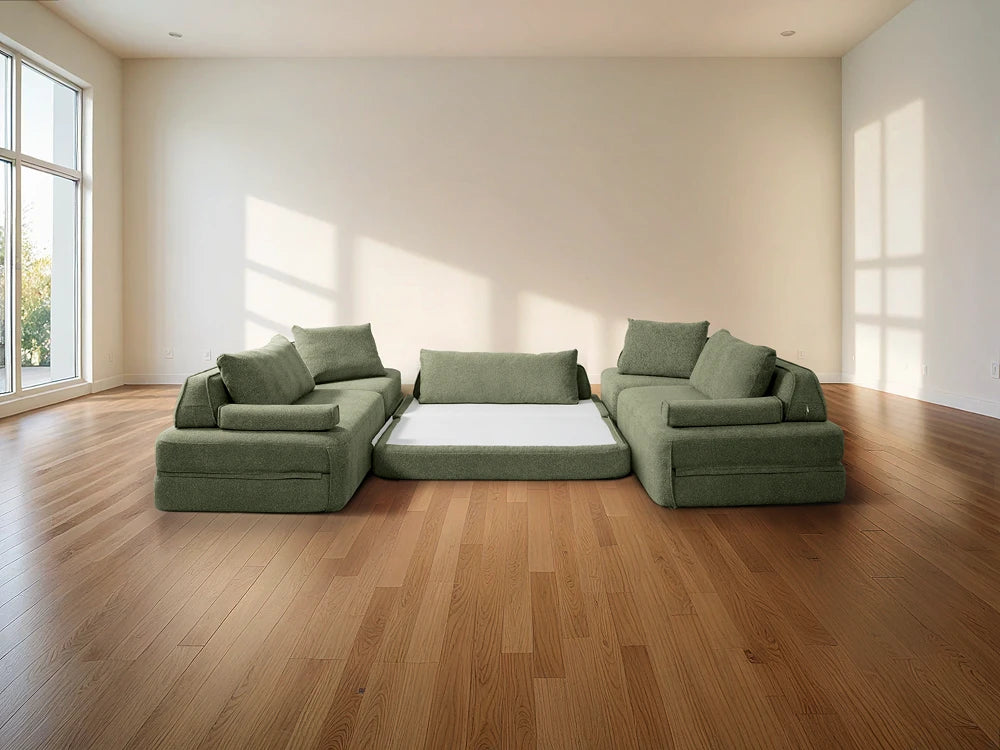 Cushie Modular Sofa Bed transforms from a stylish seat to a cozy bed in seconds—just flip and snooze. Unlike traditional sleeper sofas with noisy metal frames and complex pull-outs, Cushie keeps it simple and silent.