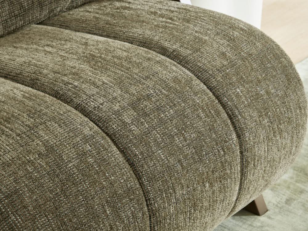 The choice of a rich, muted green fabric lends a refined yet organic touch to the Frank Armchair. This nature-inspired hue blends seamlessly into a variety of interiors, offering a pop of color that remains effortlessly elegant without overpowering the room.
