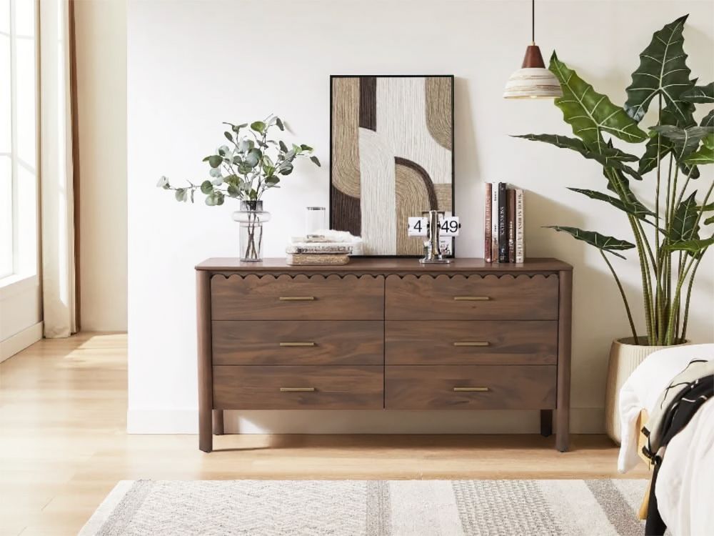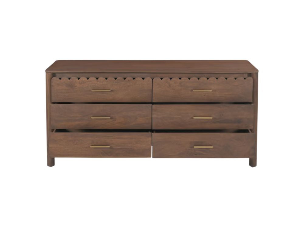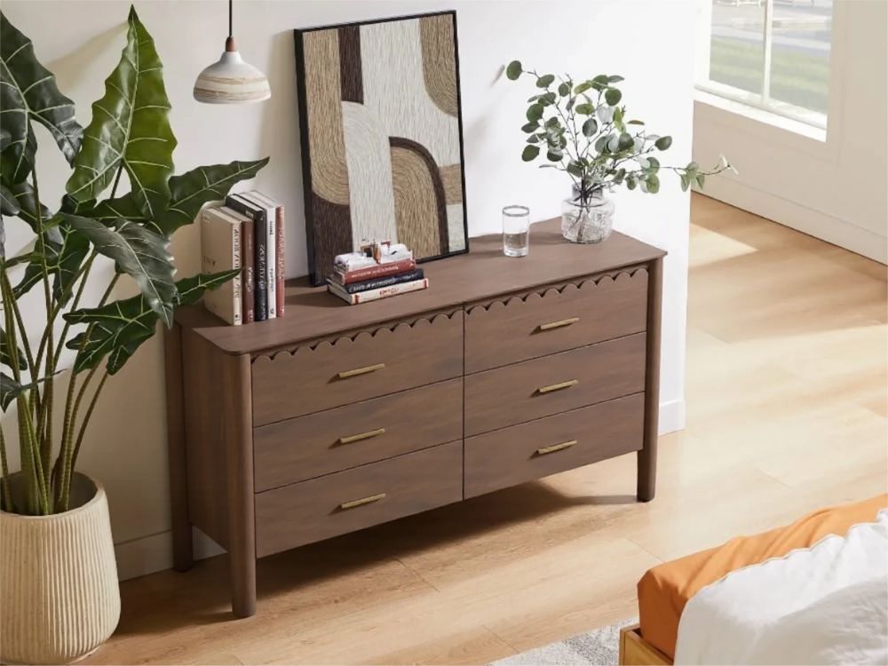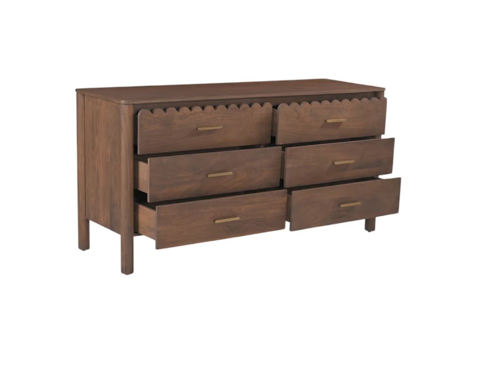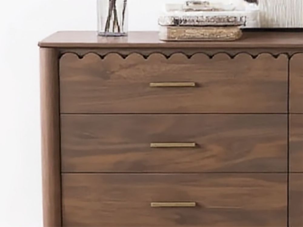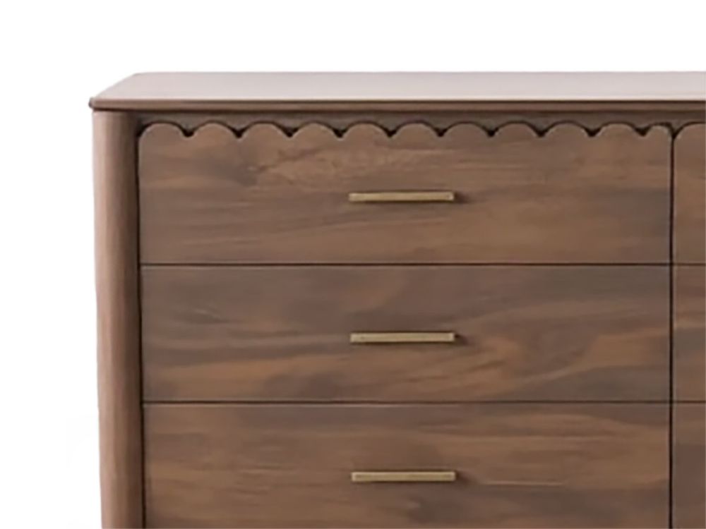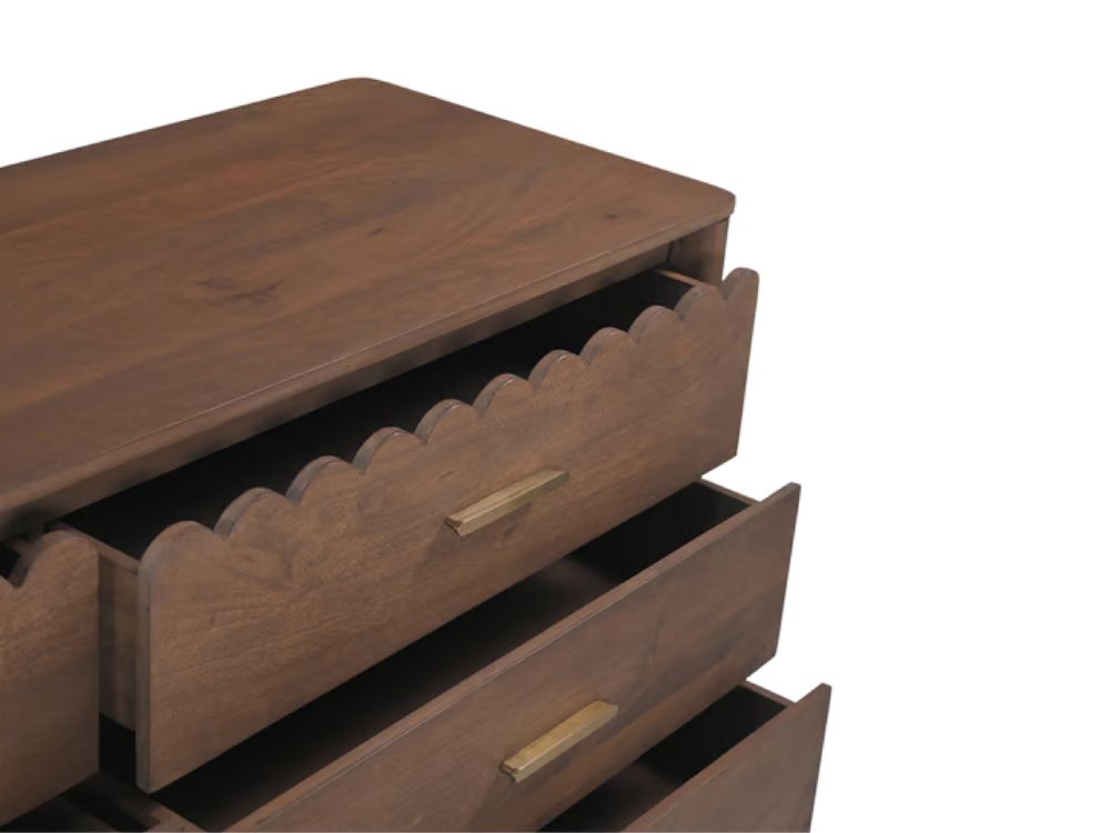 The Larry 6 Chest of Drawers brings personality and practicality together in one beautifully balanced piece. With its warm walnut finish, scalloped top edge, and sleek brass-toned handles, Larry channels old-school charm while keeping things firmly grounded in modern-day living. It’s the perfect storage solution for anyone who loves a little design character without all the fuss.