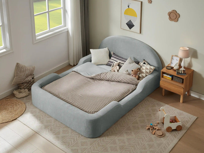 Built for Big Dreams & Little Accidents. Meet the bed that understands real life with real kids. Designed with soft, rounded edges and zero hard materials, the Little Lifely Bed keeps bumps, bruises, and bedtime stress at bay. Its low-to-the-ground design makes it perfect for toddlers learning independence — without compromising on safety.