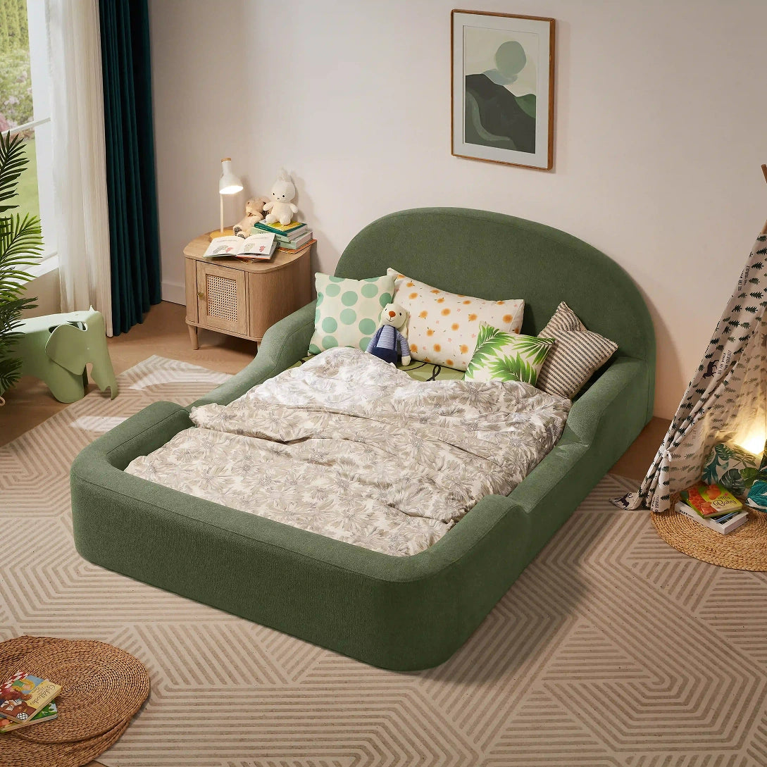 Built for Big Dreams & Little Accidents. Meet the bed that understands real life with real kids. Designed with soft, rounded edges and zero hard materials, the Little Lifely Double Bed (Pistachio) keeps bumps, bruises, and bedtime stress at bay. Its low-to-the-ground design makes it perfect for toddlers learning independence — without compromising on safety.